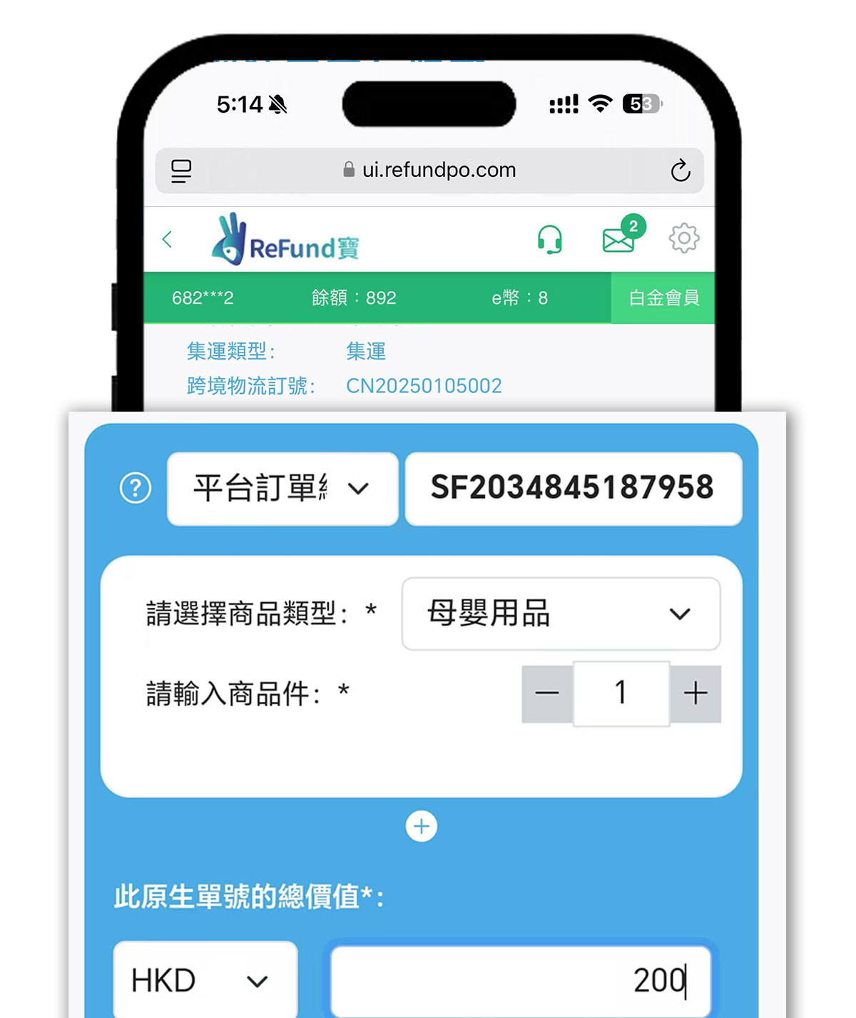 第三步:輸入跨境單號。