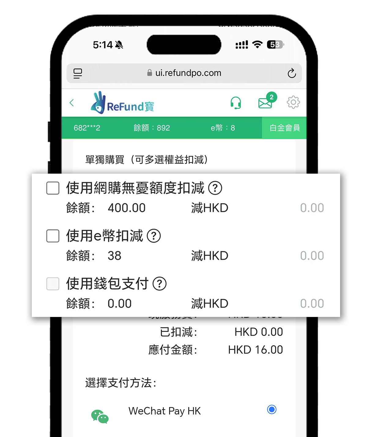 【網購無憂服務】 -- 確認服務單內容並選擇支付方式可選擇WeChat Pay HK支付服務費或選擇0元投保