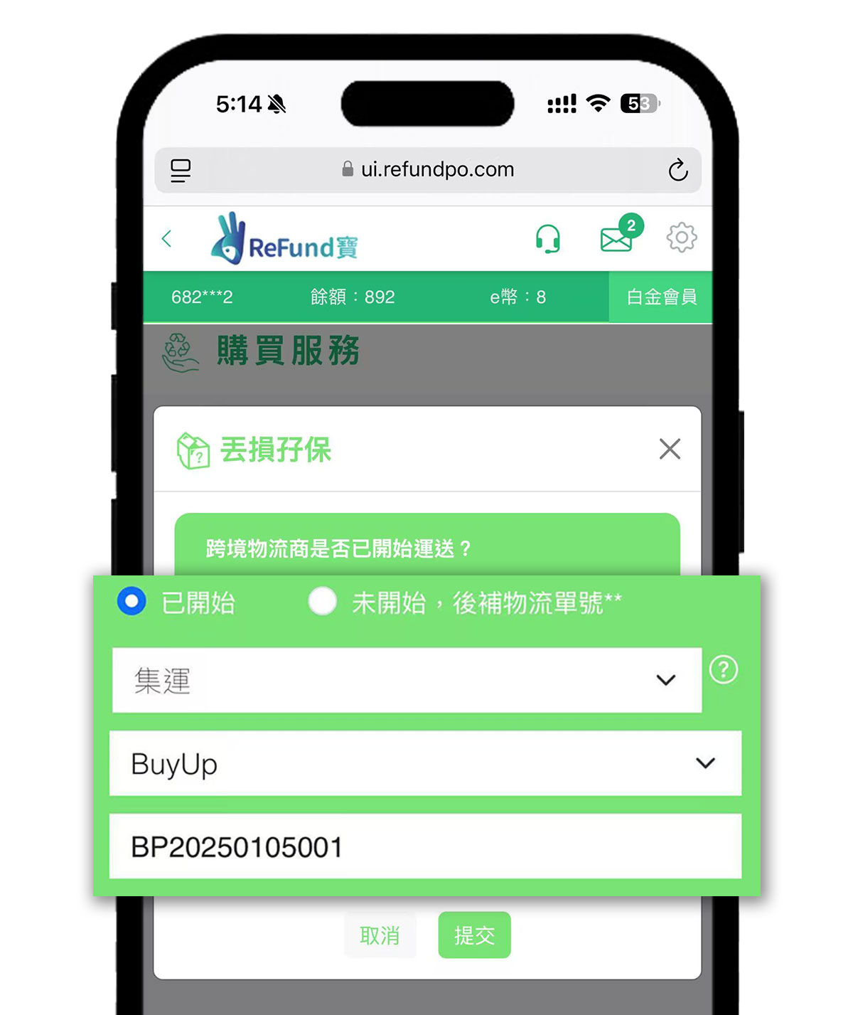 選擇:購買服務-【丟損保服務】