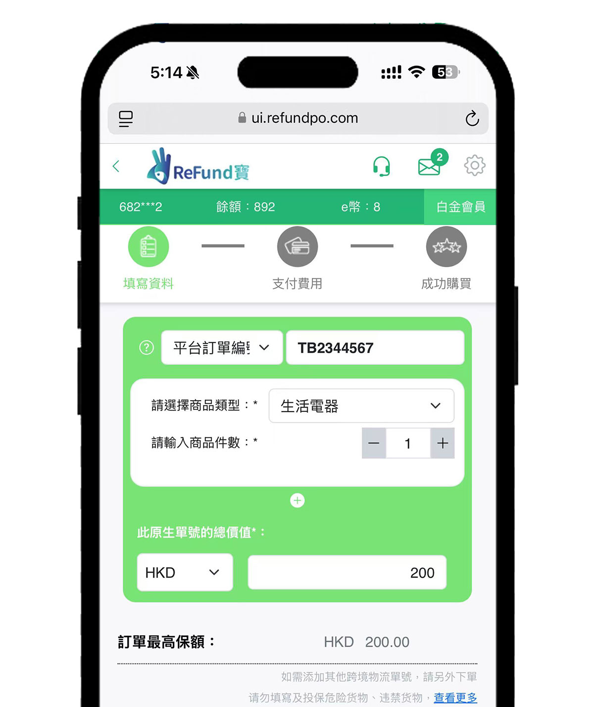 第四步:輸入訂單的總價值(HKD/CNY/)