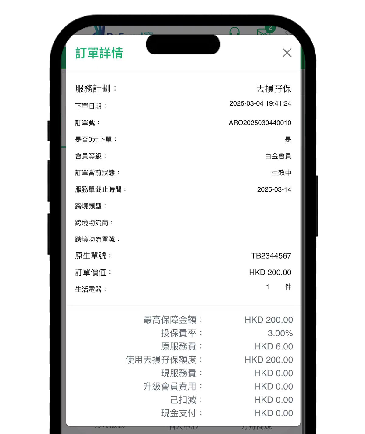 丟損保服務訂單詳情